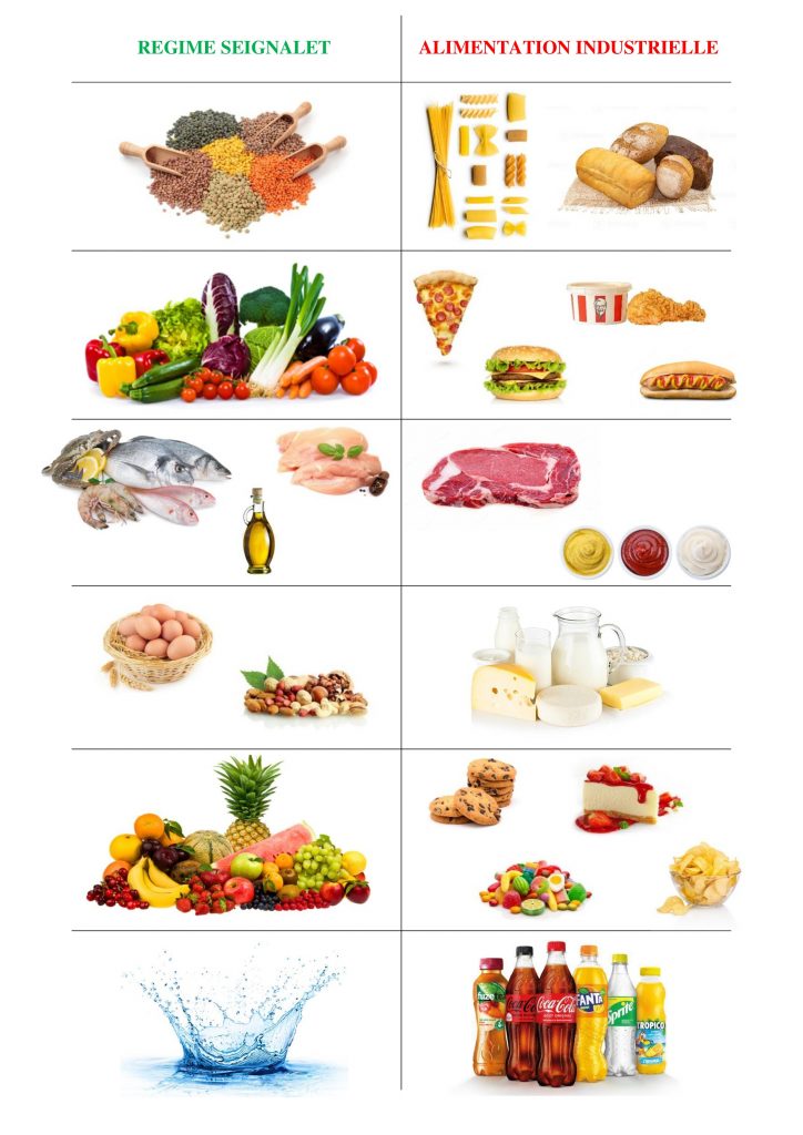 Schéma comparatif : régime Seignalet et alimentation industrielle