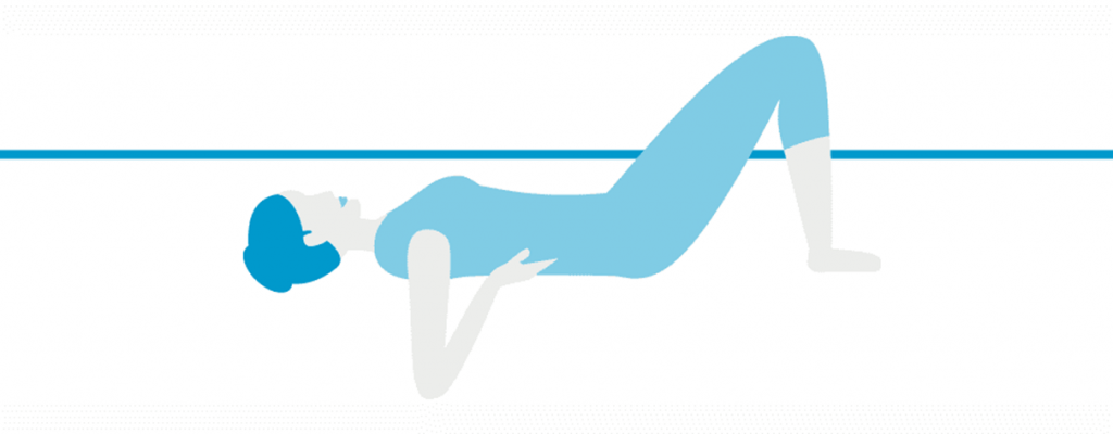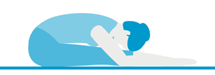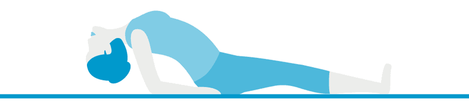 - Allongez-vous sur le dos et placez un petit coussin sous la tête. Si nécessaire, ajoutez un traversin sous les genoux. Bras et jambes sont écartés, le visage tourné vers le haut.