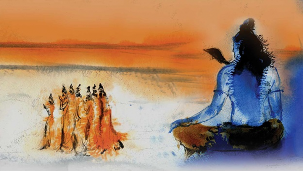 Par le partage de son savoir, Shiva l’Adiyogi (premier yogi) devient Guru (enseignant).