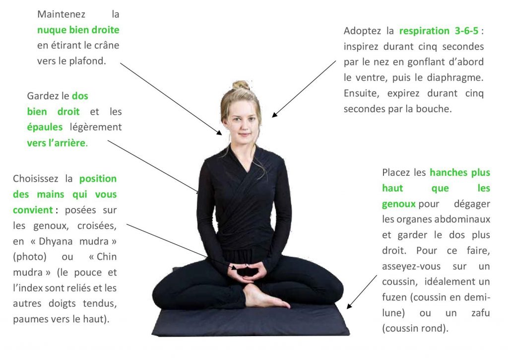 Pour plus de confort, placez un zafu (coussin rond) sous la taille pour surélever légèrement le bas du dos.